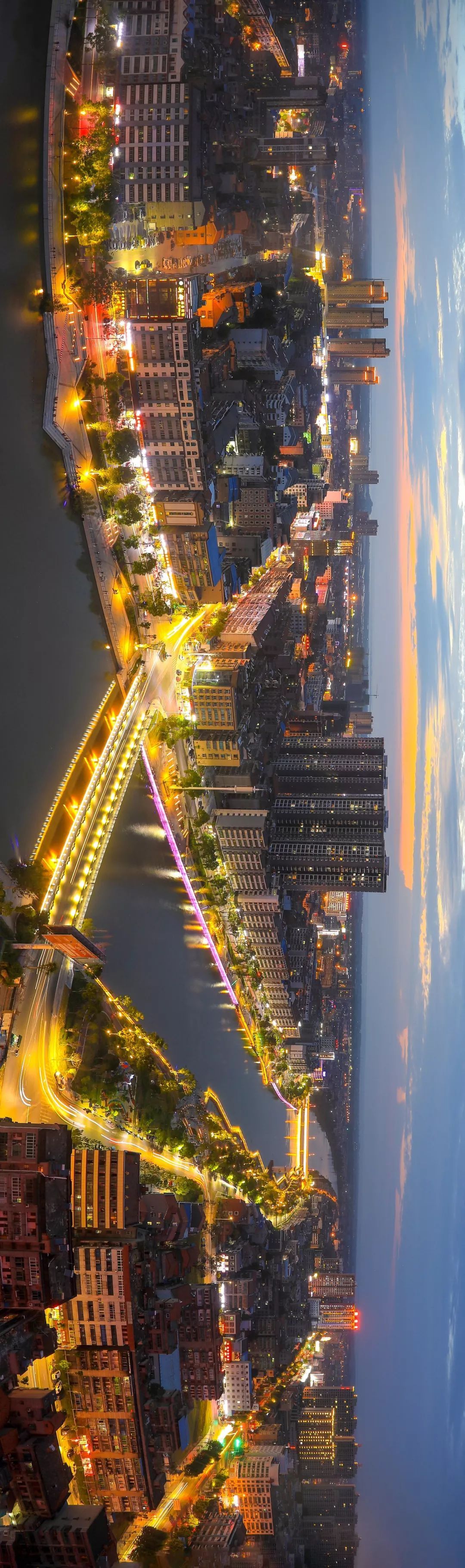 (请横屏观看,疫情前洪湖“一河两岸”迷人夜景 / 摄影师@肖杨)