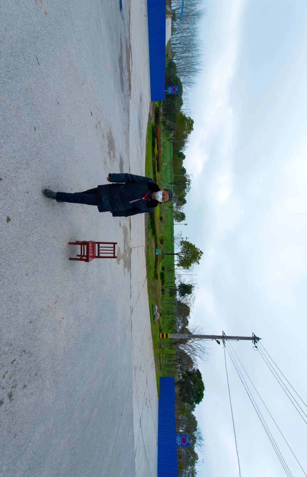8:00 茅江大道上江堤口朝阳社区值守点,税务局值班人员正在值守上江堤的通道。防疫期间长江每一段岸线,都是洪湖人民群众的安全线。在寒风刺骨的长江堤坝旁,税务局值班人员夜以继日巡查管控,严防死守。
