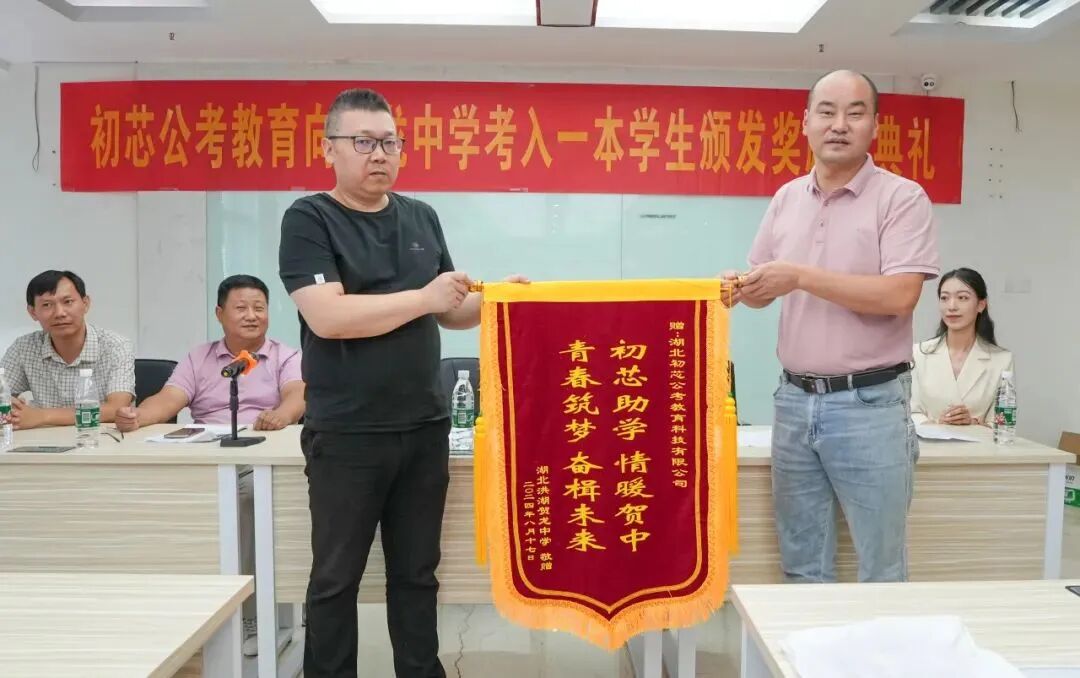 8月,湖北初芯公考教育科技有限公司携手贺龙中学为贺龙中学2024年一本线大学新生颁发奖学金53000元。