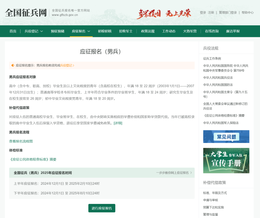 上半年应征报名:2025年1月1日至2025年2月10日24时