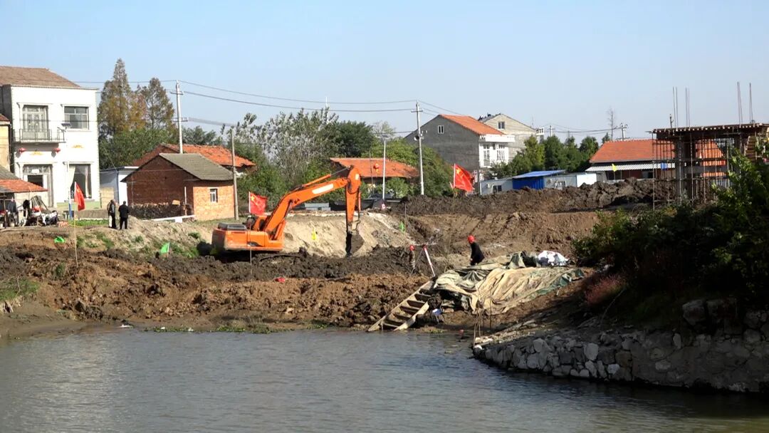 这里的涵闸主体框架已经建起来,工程建设已接近尾声。在不远处,挖掘机轰鸣声不绝于耳,施工人员有的在测量、有的在运砂石料,大家各司其职,忙碌的身影穿梭其中。