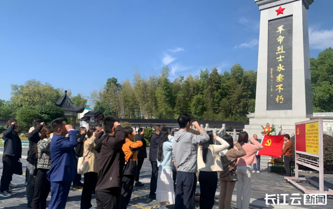 ▲荆州市机关干部在烈士纪念碑重温入党誓词