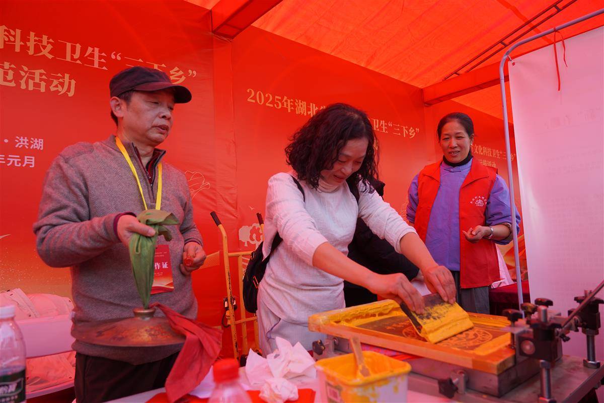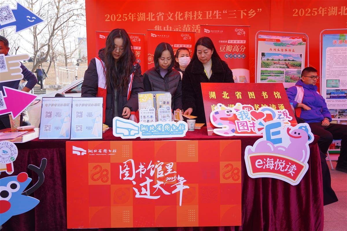 1月21日,冬日暖阳下的洪湖市荷花广场张灯结彩,54个服务展位和舞台将广场围成一圈,现场群众摩肩接踵看节目、领党报党刊、取春联门画、求医问诊、咨询农业技术,2025年全省文化科技卫生“三下乡”集中示范活动在喜庆的洪湖民俗节目《龙腾虾跃闹新春》中启动。