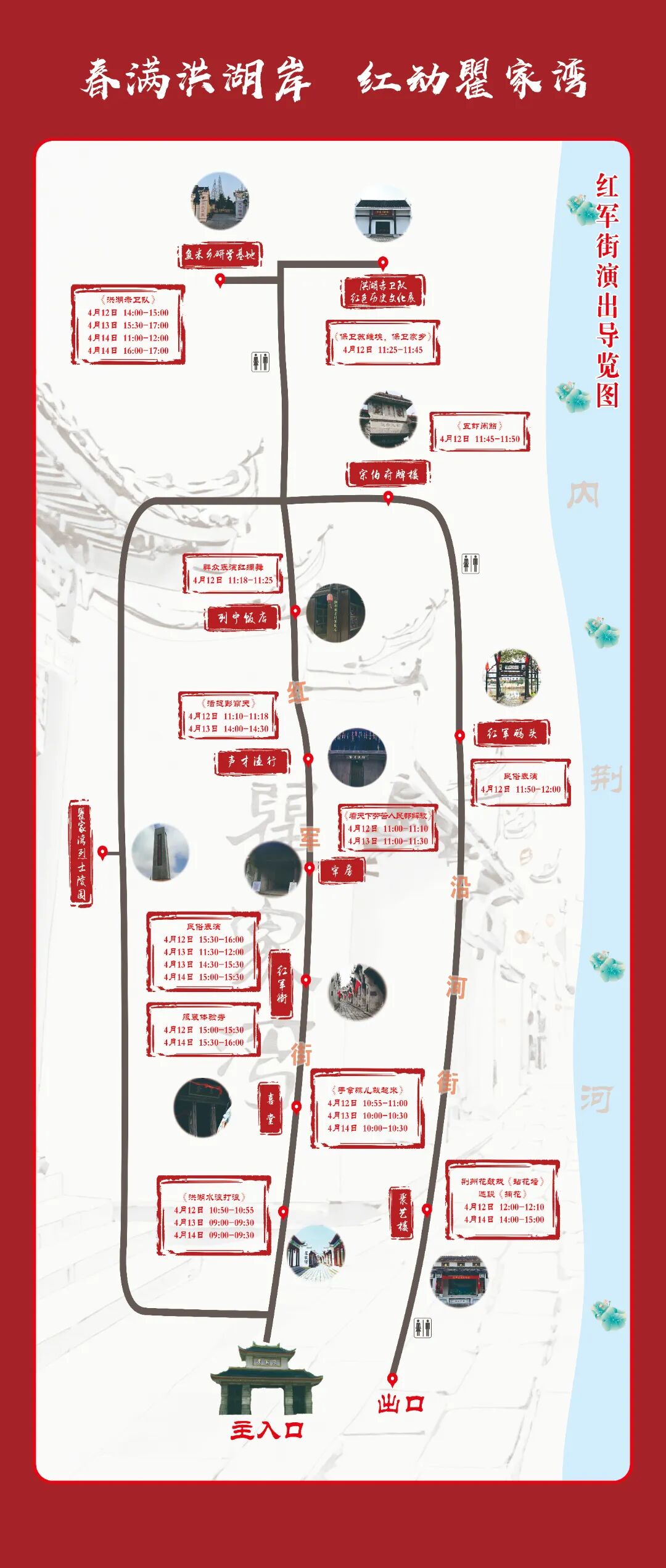 请查看下方红军街演出导览图
