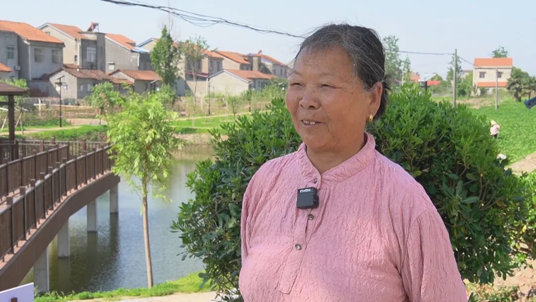 螺山镇双红村村民刘金香:以前这里垃圾多,现在环境好了,又干净又整齐,我们一出门就是小花园、小游园,住在这里非常的舒心。