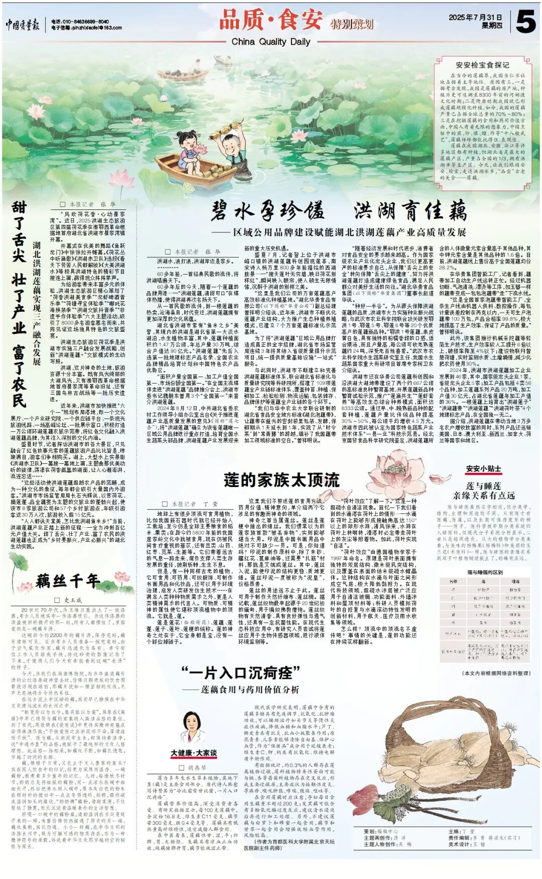 “随着经济发展和时代进步,消费者对食品安全的要求越来越高。作为国家级农业产业化龙头企业,我们以更高更严的标准要求自己,从保障‘舌尖上的安全’转向保障‘舌尖上的健康’,努力将洪湖莲藕打造成健康绿色食品,满足人民群众对美好生活的向往。”湖北华贵食品集团(以下简称“华贵集团”)董事长赵道华说。