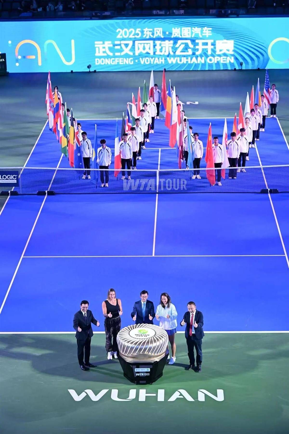 10月6日晚,2025武汉网球公开赛在光谷开赛,武网“三冠王”萨巴伦卡与巴黎奥运会女单冠军、湖北姑娘郑钦文惊喜亮相开幕式。