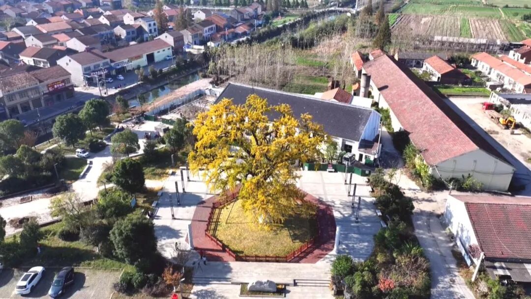 眼下,资市镇资福寺社区的这棵千年古银杏,正迎来最佳观赏期。暖阳洒落,微风轻拂,金黄的叶片如小扇子般,或在枝头摇曳生姿,或轻落泥土与之相拥,一片片、一簇簇,将整棵古树装点得灿烂夺目。不同于其他植物的姹紫嫣红,银杏仅凭一树纯粹的金黄,便将初冬景致渲染到极致,吸引了不少游客慕名而来。