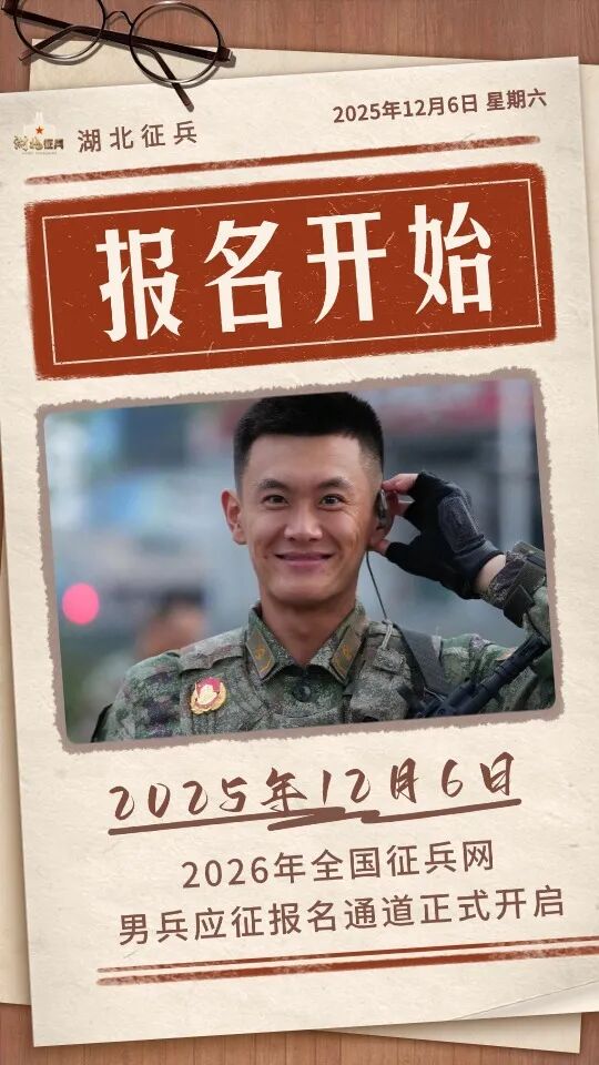 参考往年报名时间,女兵可以在2026年1月重点关注全国征兵网。具体时间需以全国征兵网为准,或持续关注“湖北征兵”公众号,后续将第一时间为大家提供具体报名时间和相关信息。