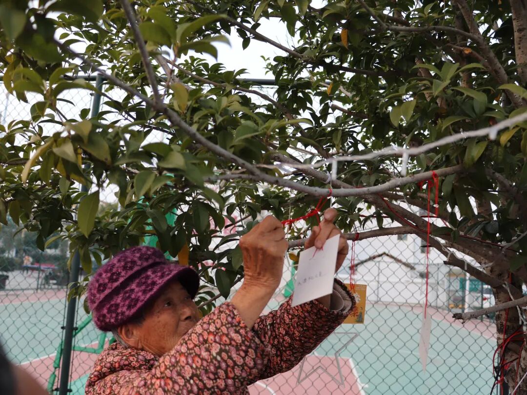 包饺子活动后,腰鼓队铿锵的鼓点将气氛推向高潮。来到“祈福乌林”写心愿环节,村民们认真书写对个人、家庭和村庄发展的美好祝福。“愿村里越来越美”“希望家人健康长寿”“希望孙子学业有成”……一句句朴实的心语,挂上枝繁叶茂的“心愿树”,承载着村民们对美好生活的向往。