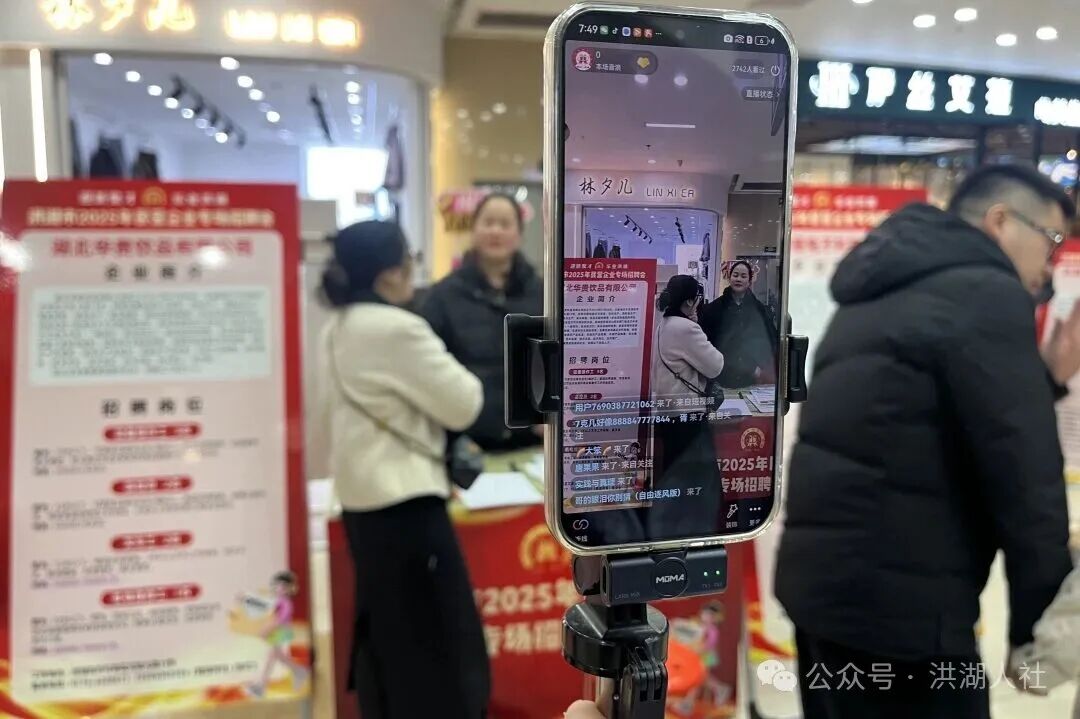 活动通过 “洪湖人社” 抖音号、视频号全程同步直播,在线观看人数累计达2758人次,打破了招聘服务的时空限制,为未能到场的群众也实时提供了岗位推荐及政策解答服务,进一步拓宽了活动辐射范围。