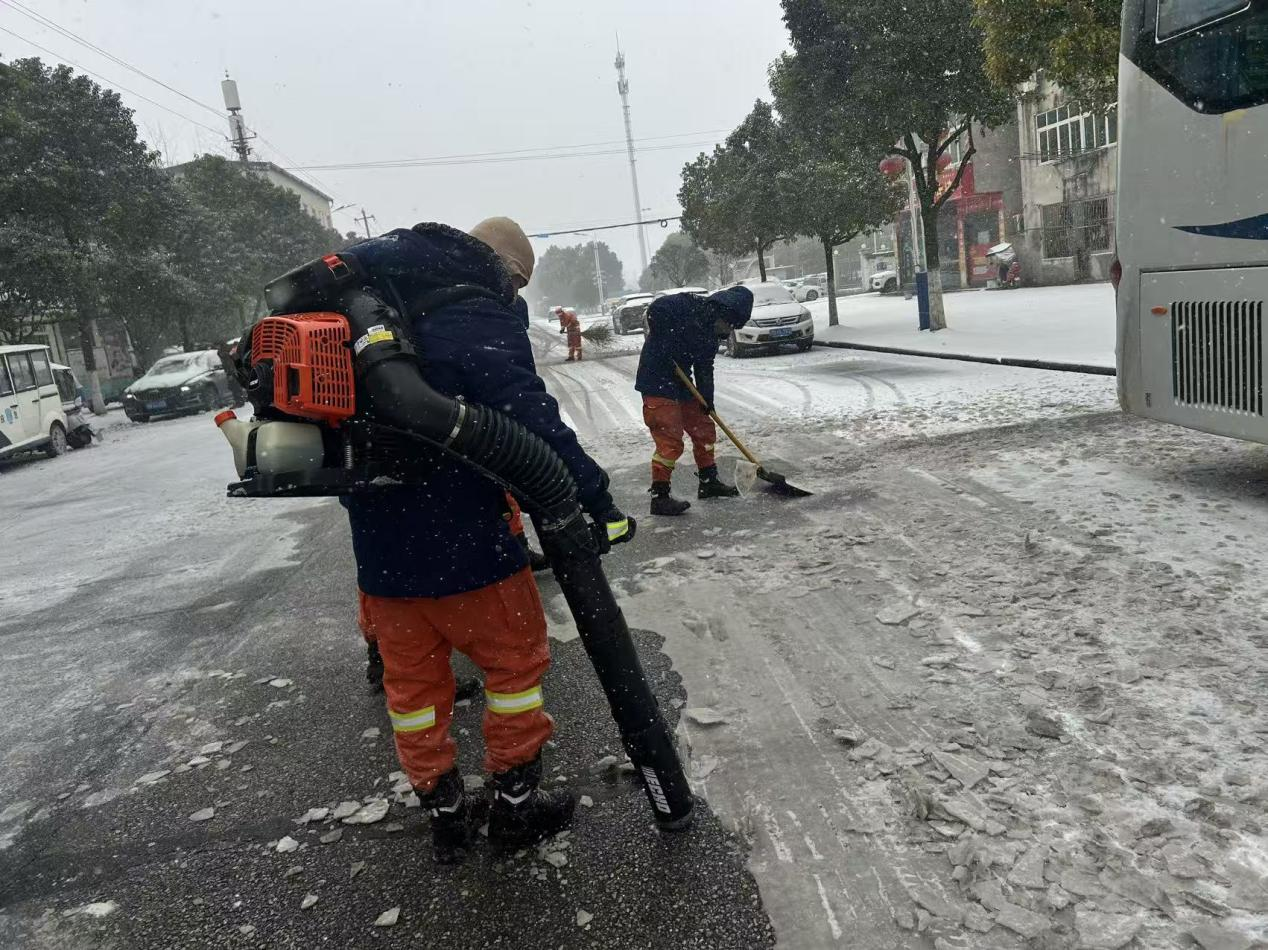 镇城管针对全镇重点路段,采取“先主后次、先通后净”的原则,统筹调配人力物力,出动应急车辆,使用鼓风机、融雪盐等物资,对镇街主干道、桥梁、坡道等关键路段,全力保障道路通畅。