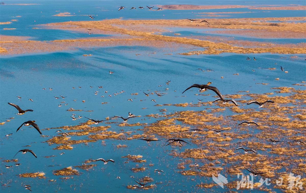 2025年12月26日,成群候鸟翩跹起舞,在澄澈的湖面与葱郁的植被间,绘就一幅灵动的生态画卷。
