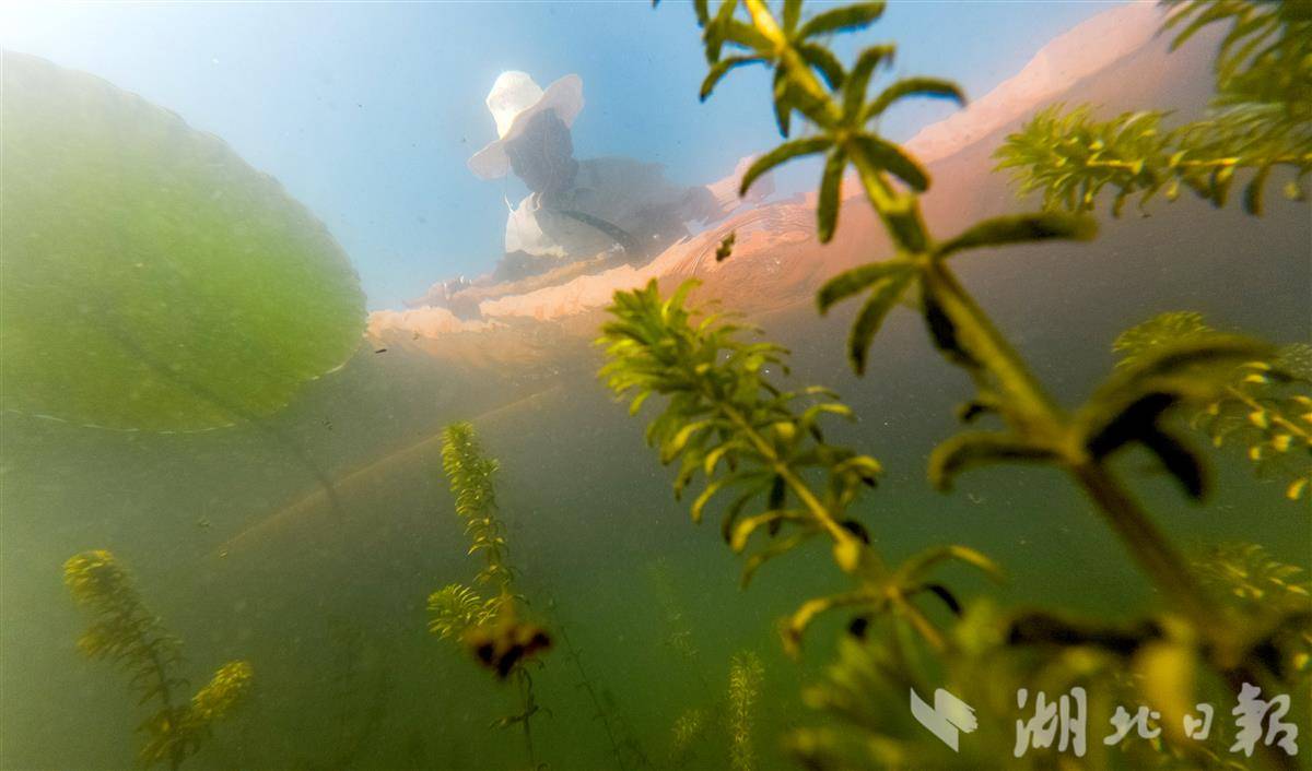 2025年8月27日,在洪湖底泥洗脱生态修复试验区,野菱、野莲、苦草、眼子菜等水生植物蓬勃生长,“水下森林”初具雏形。
