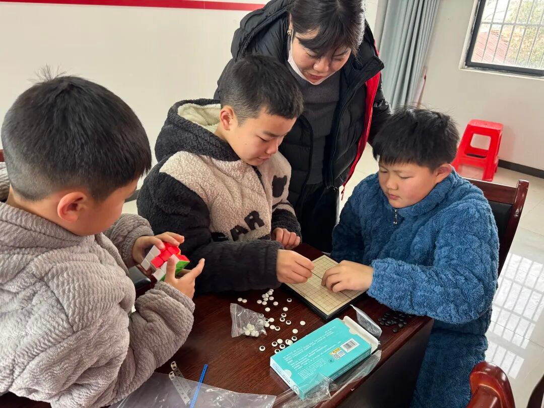 托管班现场,志愿者们化身“爱心辅导员”,耐心细致地辅导孩子们完成寒假作业,逐一解答学习中遇到的困惑,助力孩子们查漏补缺、巩固知识。除了基础的课业辅导,托管班还精心设计了丰富多彩的素质拓展活动,剪纸艺术学习中,孩子们认真勾勒、细心裁剪,感受传统工艺的魅力;黏土创作环节,孩子们充分发挥想象力,塑造出一件件充满童趣的作品;棋类对弈中,孩子们沉着思考、相互切磋,在娱乐中锻炼逻辑思维与耐心。多样化的活动不仅丰富了孩子们的假期生活,激发了创造力与动手能力,更让中华优秀传统文化在趣味实践中浸润童心。