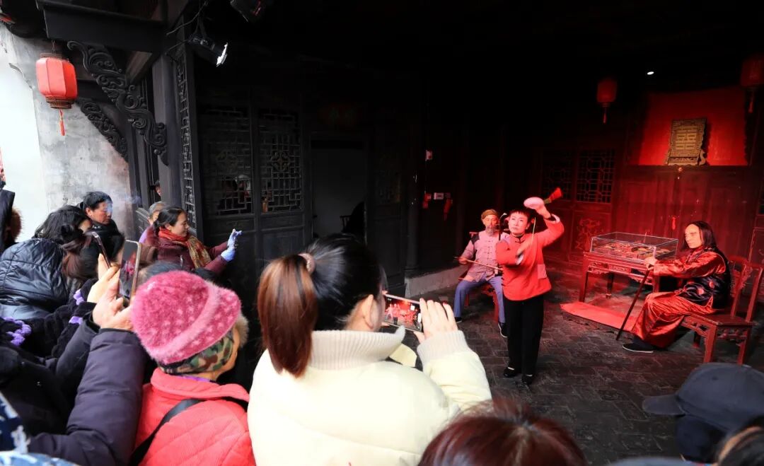 外地游客 汪盛英:我是从湖北黄冈过来的,本来是来参加婚礼,第一次逛老街就被惊艳到!节目喜庆又热闹,感触特别深~