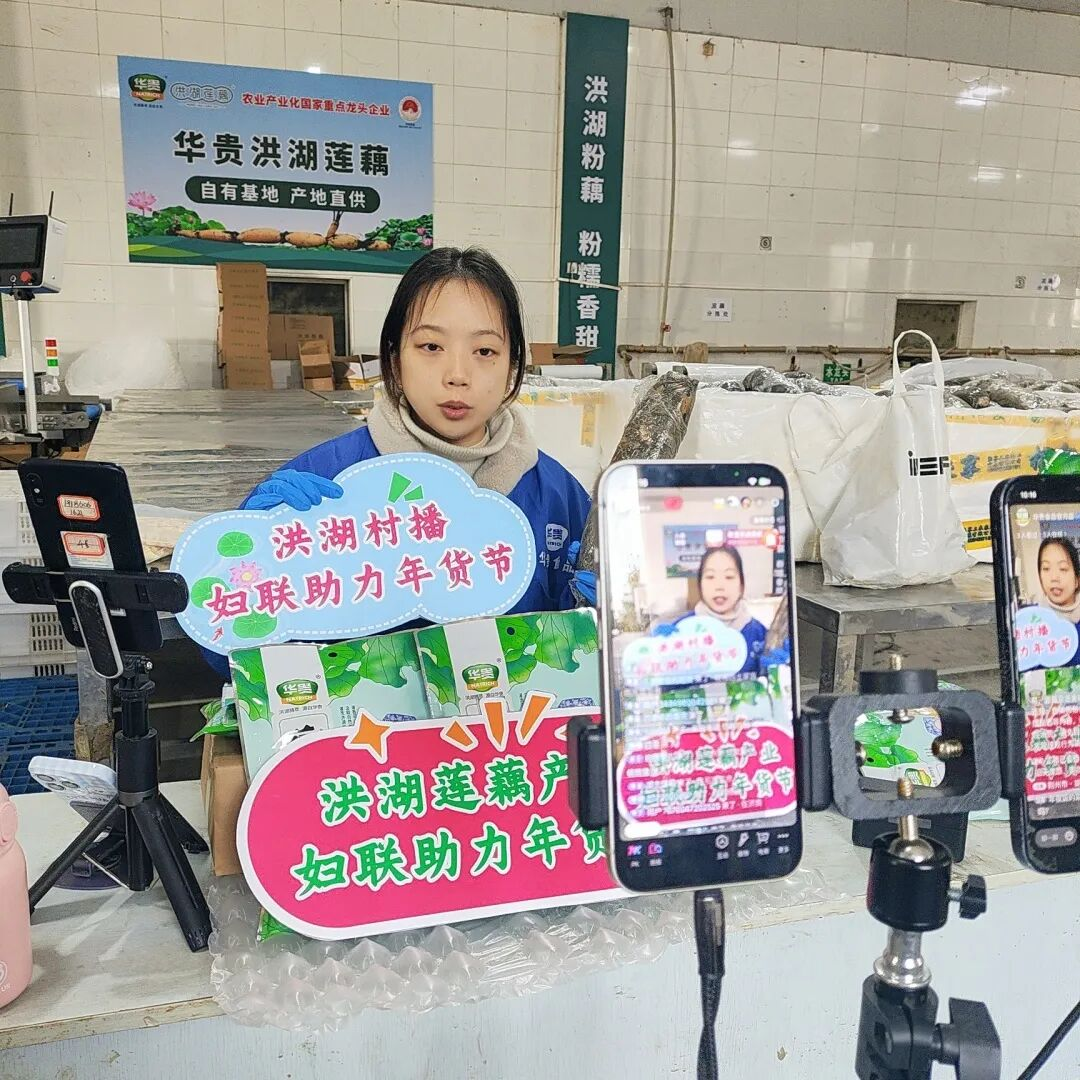 为全力助力年货销售,让家乡的好物走向更广阔的市场,洪湖市妇联积极发动村播妇联、莲藕产业妇联姐妹开展“巾帼村播助农”活动。通过数字化手段,为传统年货插上了一双腾飞的翅膀,让洪湖的特色产品在“云”端绽放出耀眼的光芒。
