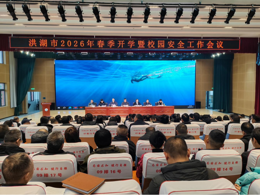 市教育局党组书记、局长刘会堂作工作报告。他指出,2025年全市教育工作稳中有进、亮点纷呈。2026年是“十五五”规划的开局之年,也是洪湖教育高质量发展的关键之年,全市教育工作要紧紧围绕“安全、质量、管理、发展”四大核心,突出抓好五个方面重点任务,切实办好教师幸福、学生快乐、群众满意的教育,为“加快建成中部地区崛起的重要战略支点”贡献教育力量。他要求,2026年要聚焦关键目标,精准发力、务求实效。一要突出抓好教育质量,增强人民教育福祉。深入实施素质教育,深化“思政一体化”建设;扎实推进教育改革,深化教联体建设;持续巩固“双减”成效,规范校外培训监管。二要突出抓好队伍建设,夯实教育人才保障。强化师德师风建设,持续开展“寻访荆楚好老师”活动,落实三级巡查机制;分层分类开展中小学书记校长、班主任、新入职教师等9项培训。三要突出抓好民生服务,激发教育发展动能。常态化开展中小学校食品安全和膳食经费管理突出问题专项整治,聚焦“校园餐”管理、校服购置、教辅征订、“课外辅导”乱象等重点领域,维护群众切身利益。四要突出抓好资源供给,提升办学总体水平。确保新旗小学教学楼新建、贺龙中学宿舍楼新建等8个项目如期完工;实施“校园清凉工程”,完成49所学校1043台空调安装,改善办学条件。五要突出抓好安全保障,筑牢教育发展根基。深化安全宣传教育,形成家校共育合力;严格落实“党政同责、一岗双责、齐抓共管、失职追责”安全生产责任制;做好信访维稳,畅通诉求渠道,严防负面舆情。
