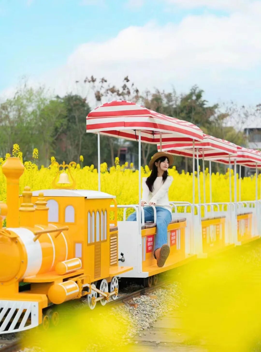 3月6日,花海开幕式当天,抖音团购购买花海小火车,18岁以上女性本人仅需1元乘坐。(每人限购1张)