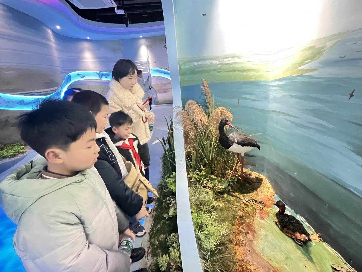 活动现场,保护区工作人员热情接待了师生及家长们,带领大家近距离探访长江江豚、白鱀豚等珍稀水生生物的相关展区,详细讲解它们的生存现状、外形特征以及保护历程。工作人员结合长江生态修复的真实案例,生动讲述了物种守护背后的故事,让在场的每一位参与者都深刻认识到生态保护的重要性。