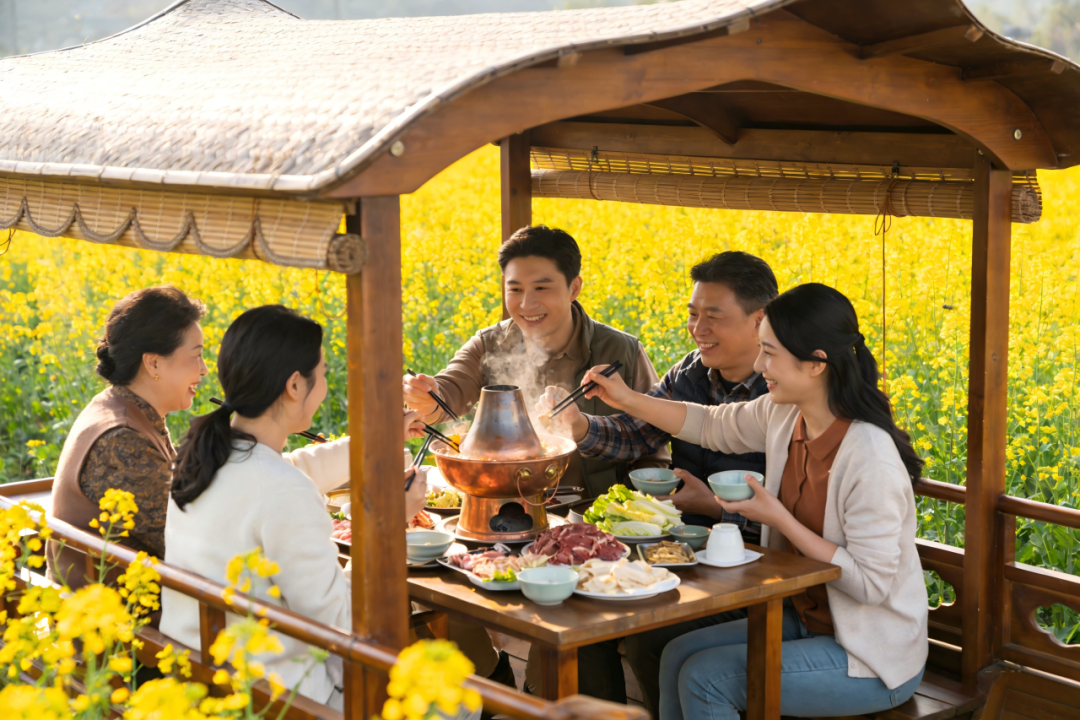 逛玩之余,沙口特色美食等你来尝!花海鱼米宴以再生稻和洪湖特色水产为根基,打造地道水乡滋味,花海火锅可提前预定。
