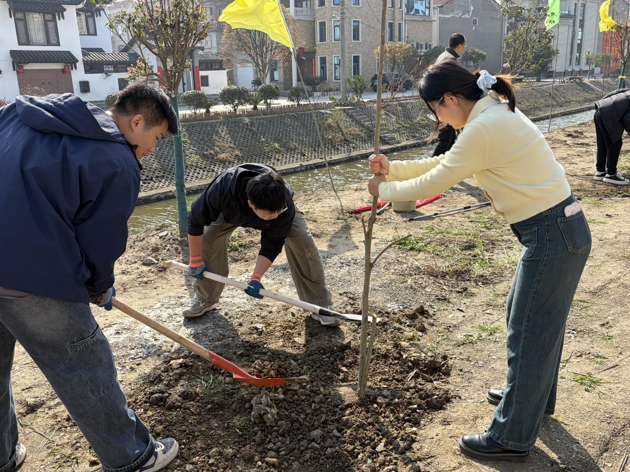 活动现场,红旗飘扬、干劲十足。大家分工协作、默契配合,有的搬运苗木、有的挖掘树坑、有的扶正树苗,忙碌的身影与春日新绿相映成景,构成了一幅“干群同心植新绿”的生动画卷。