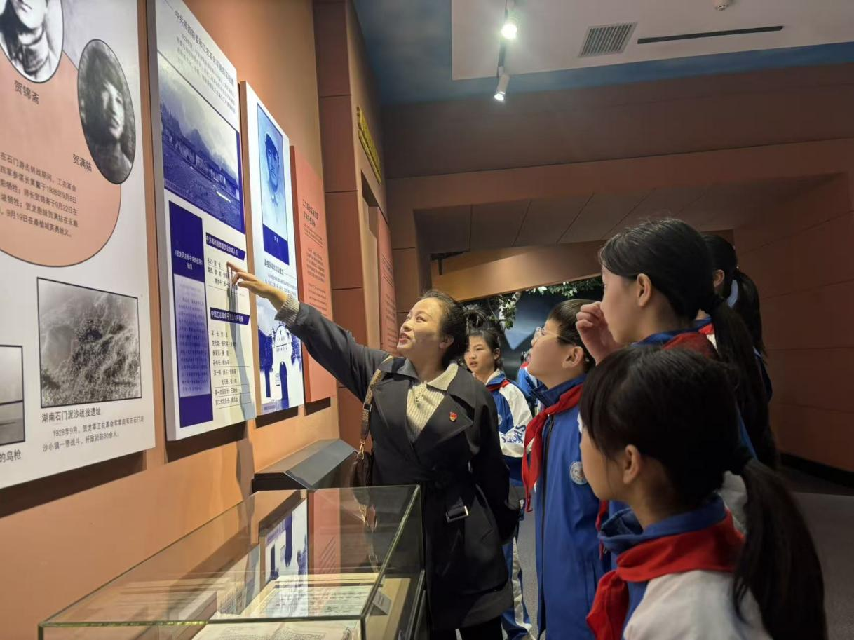 祭扫结束后,全体人员在讲解员带领下参观革命烈士纪念馆,通过历史图片、珍贵文物深化红色认知,坚定传承红色基因的信念。此次校社联动活动,不仅厚植了少先队员的爱国主义情怀,也搭建了校社合作育人平台、形成德育合力。