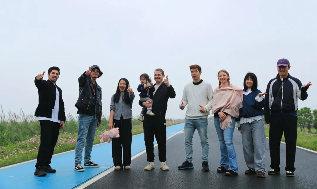 在洪湖金湾金道,中外青年们沿着大道缓缓漫步,近距离感受洪湖的魅力,大家一边观赏,一边相互交流感受。“确不确(好不好)?”“确(好)!”“洪湖蛮确(洪湖蛮好)!”大家相互打趣、彼此纠正发音,用学会的洪湖方言表达自己的感受。