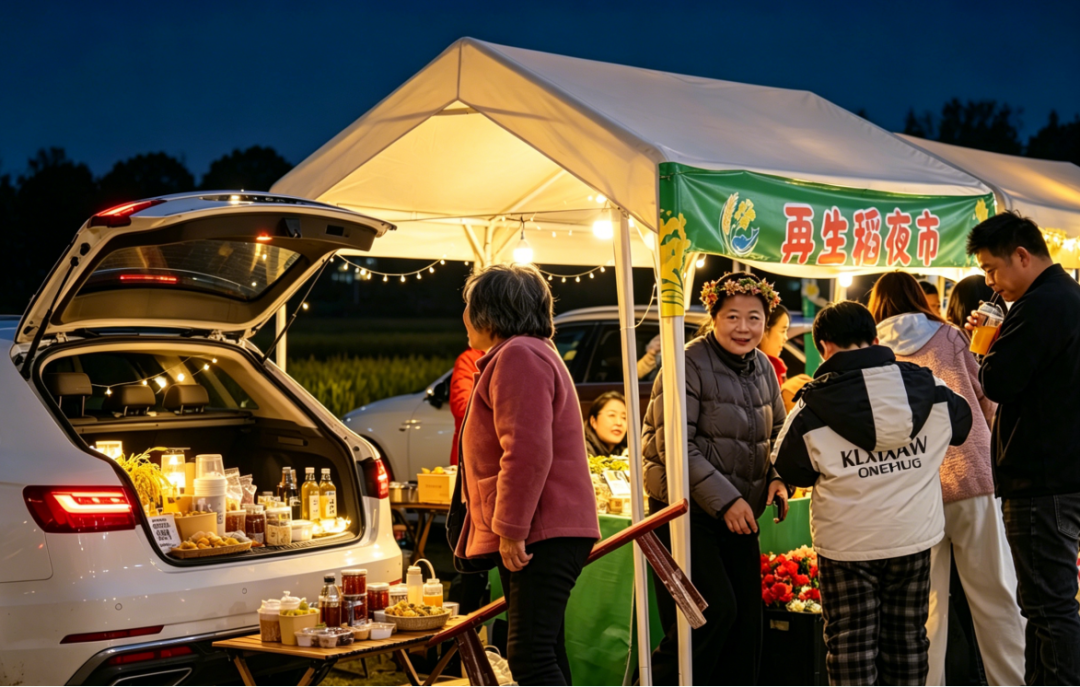 稻田夜市+汽车后备箱集市,特色美食、文创产品,逛吃逛玩两不误。