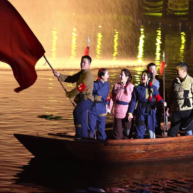 不是寻常游客的闲逛,而是一场穿越时空的“集结”! 五一假期欢迎你来洪湖~点亮水乡夜,梦回瞿家湾!(来源:荆州发布)#五一去哪儿 #荆州旅游攻略 #红色旅游 #无人机 #水上舞台