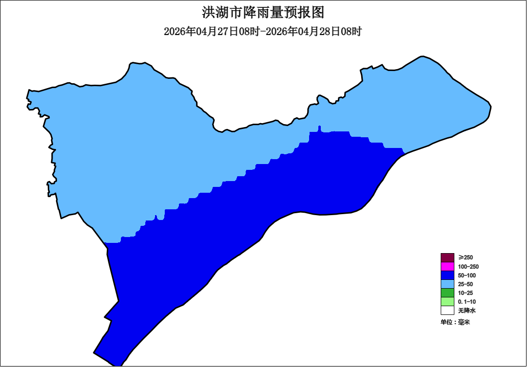 洪湖市4月27日08时至28日08时累计降雨量预报图