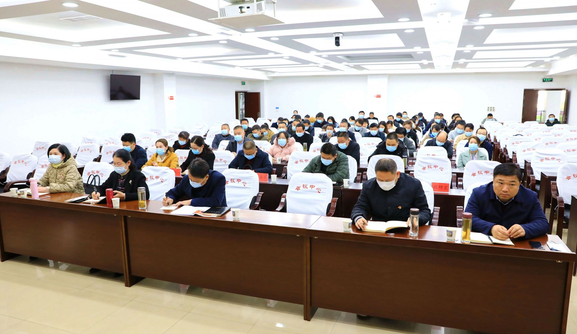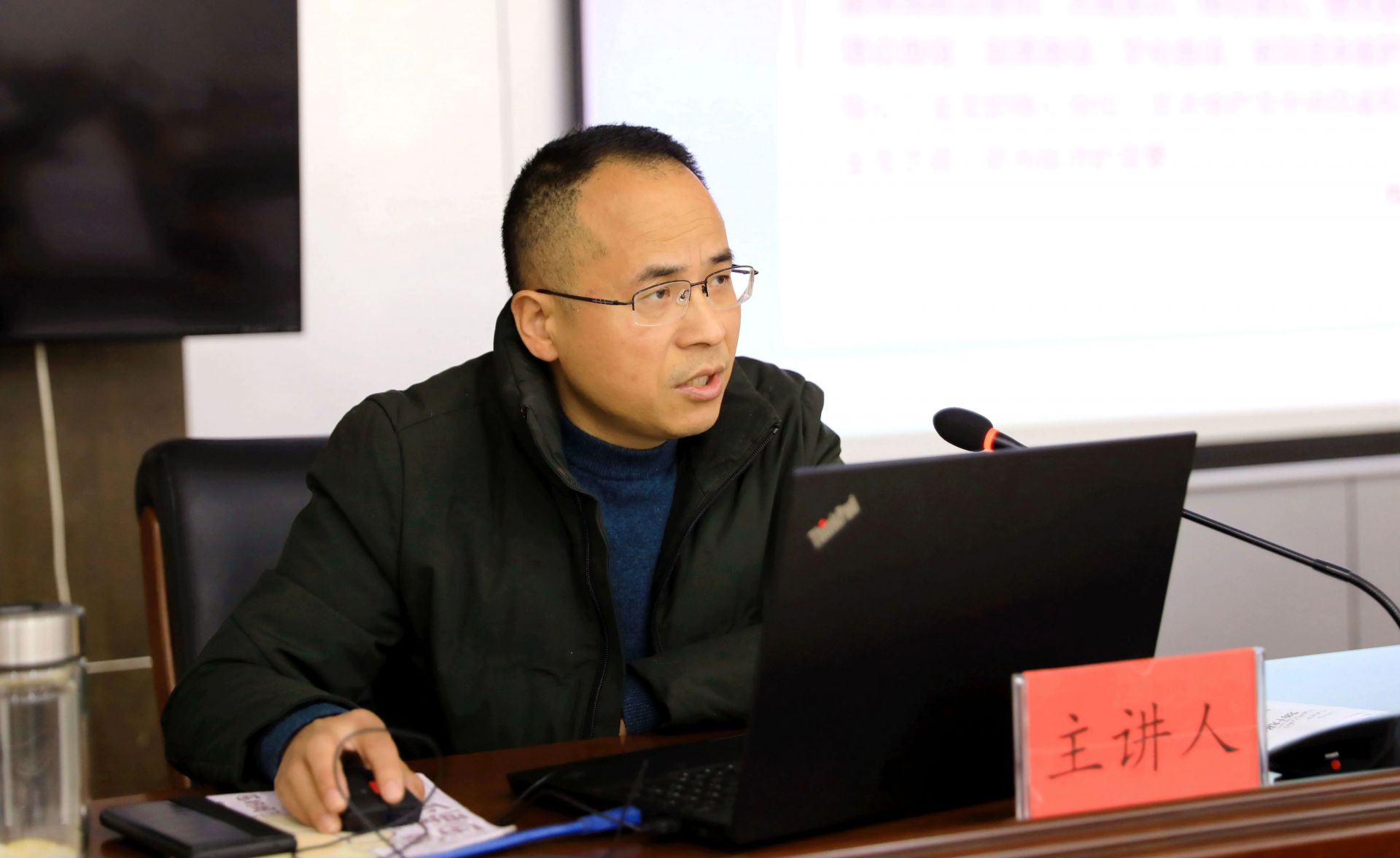 12月17日,市委办、市人大办、市政协办、市委政研室、市机关事务服务中心等部门共同学习党的十九届六中全会精神。市委宣讲团成员、市委办副主任倪安国为参会的党员干部进行宣讲。