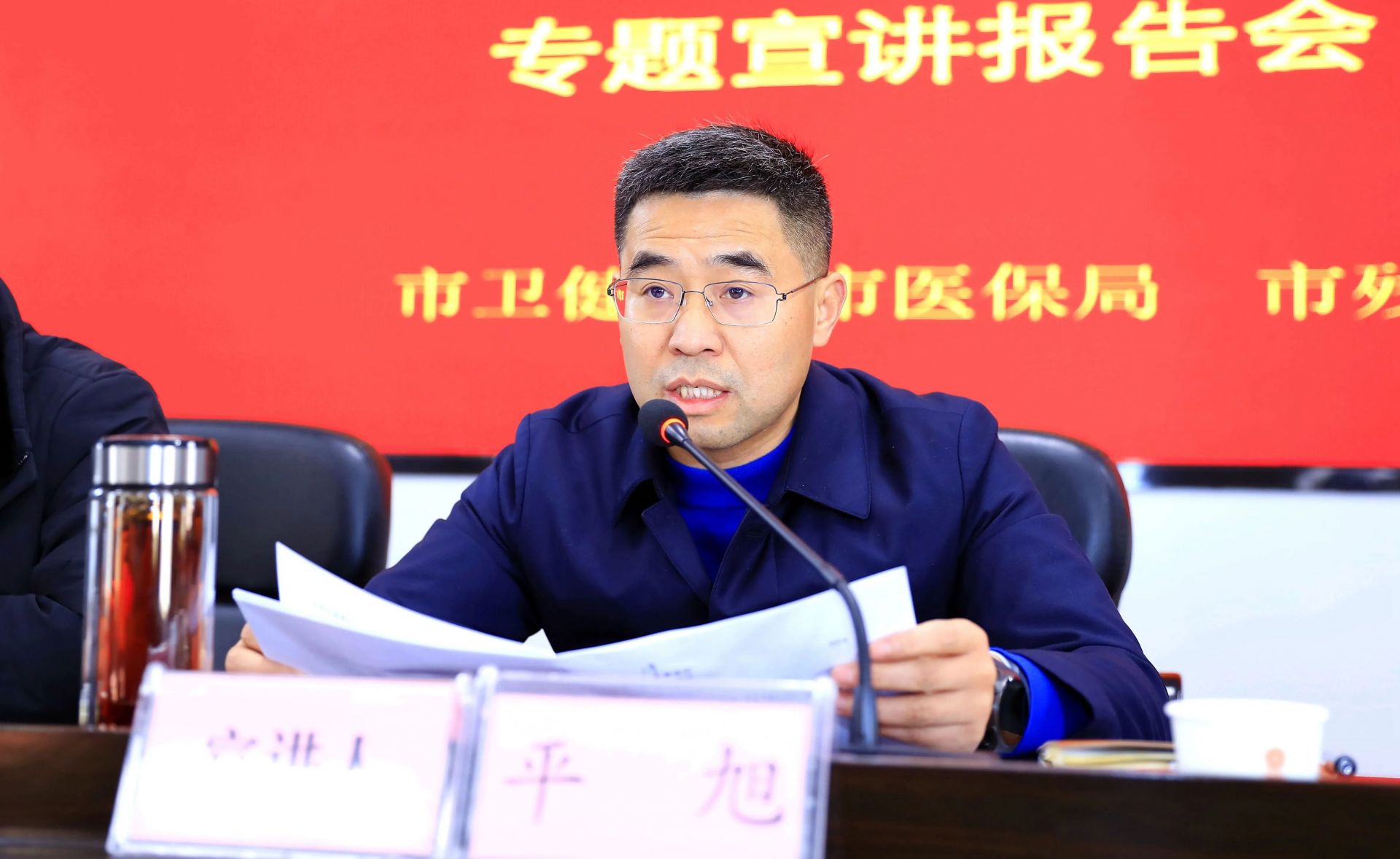 12月17日,市卫生健康局、市医保局、市残联共同组织学习党的十九届六中全会精神。市委宣讲团成员、市卫生健康局局长平旭现场为大家作宣讲报告。