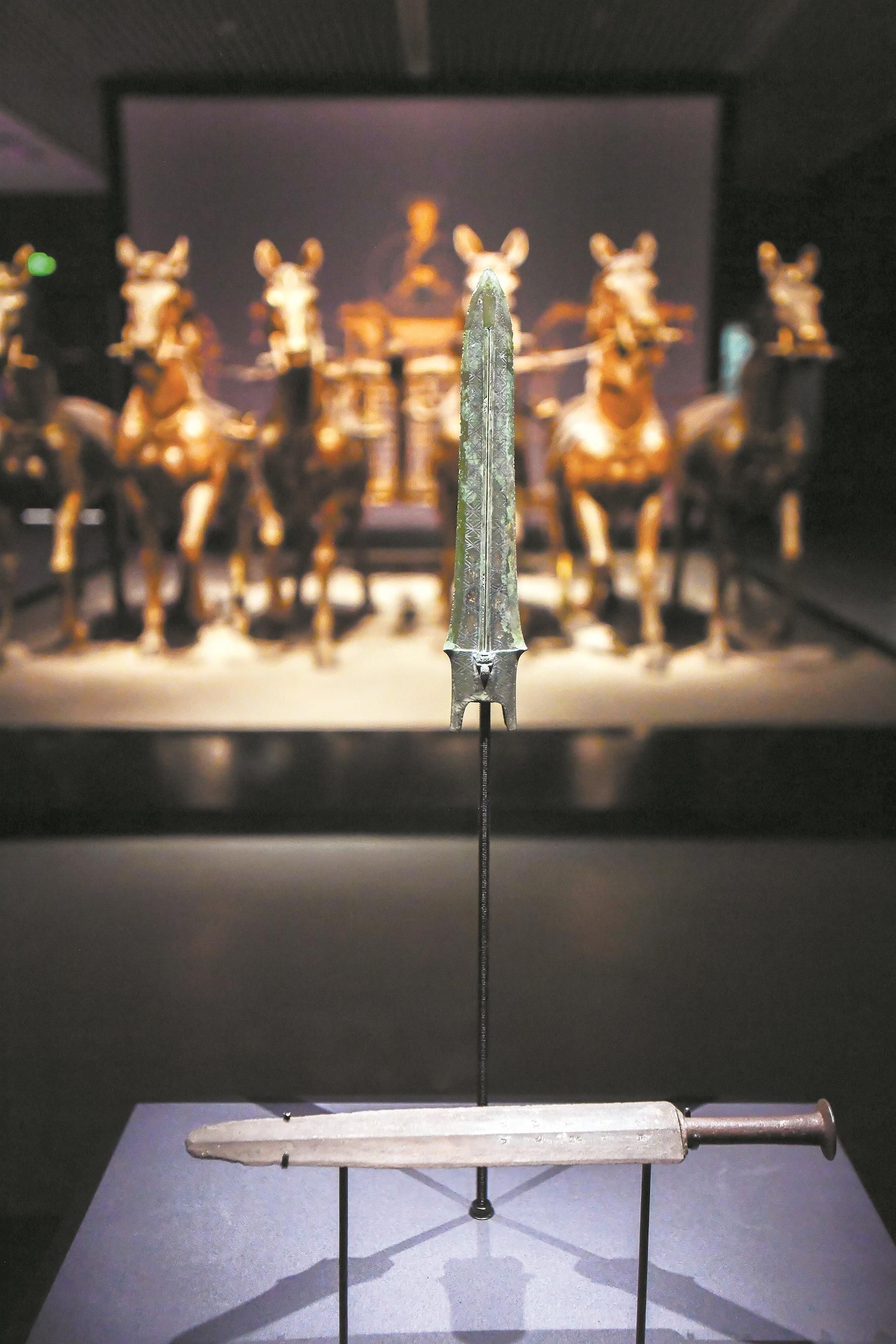 吴王夫差矛和吴王夫差剑。摄影:楚天都市报极目新闻记者 萧颢
