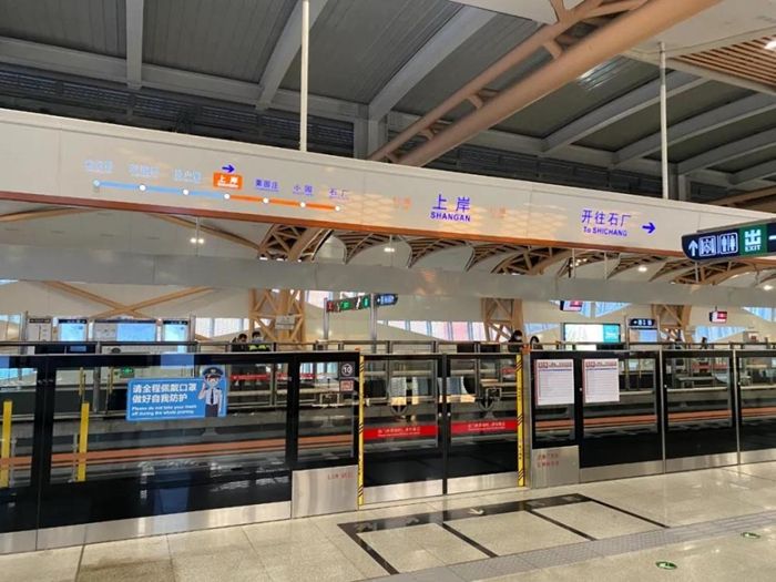 今天下午,记者来到S1线上岸站看到,尽管到了晚高峰期间,站台上等车的乘客仍旧不多。记者站在站台上等待了三趟车,每趟车进站之后,都有一两名专程前来“打卡”的同学下车。刚一下车,学生们就掏出手机,对着站台上的站名牌拍个不停。有的同学还专门走出车站,到站外的广场上与站房上“上岸站”三个大字自拍合影,也有的同学在站内拍完照,走到了对面的站台坐车直接返回。
